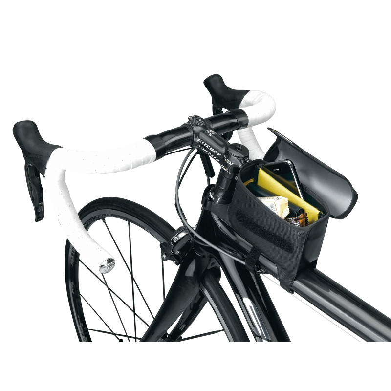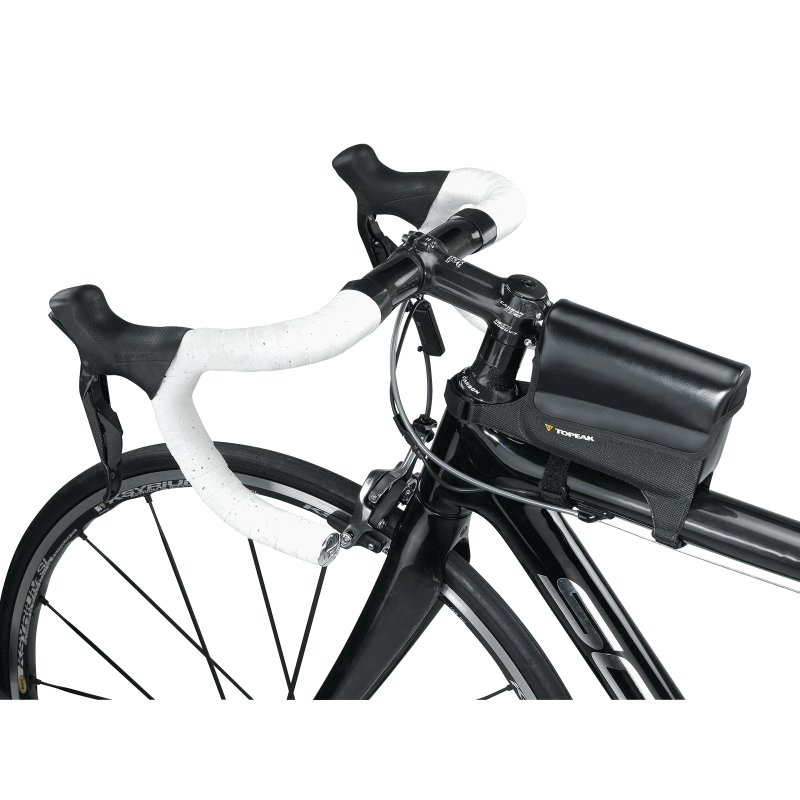 Сумка Topeak Tri DryBag легко устанавливается на верхней трубе рамы. Сумку по достоинству оценят владельцы шоссейных велосипедов, так как во время тренировок или гонок появляется быстрый и легкий доступ к энергетическим батончикам или гелям.