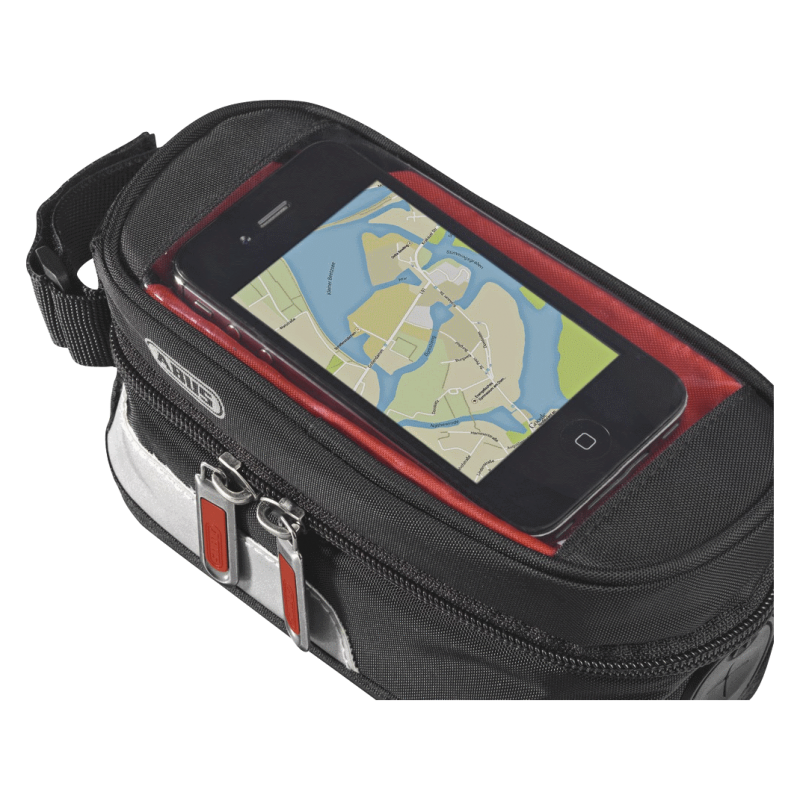 Удобная сумка для велосипеда ABUS ST 2230 Oryde, с креплением на верхнюю трубу раму. Помимо всякой мелочи, в этой сумке удобно перевозить мобильный телефон, прозрачный верх позволяет пользоваться сенсорным экраном, а сбоку имеется отверстие для наушников или зарядки.