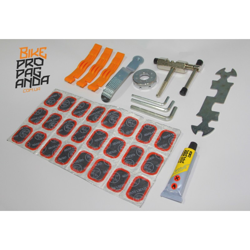 подойдет начинающим велосипедистам, в наборе есть полный набор для ремонта