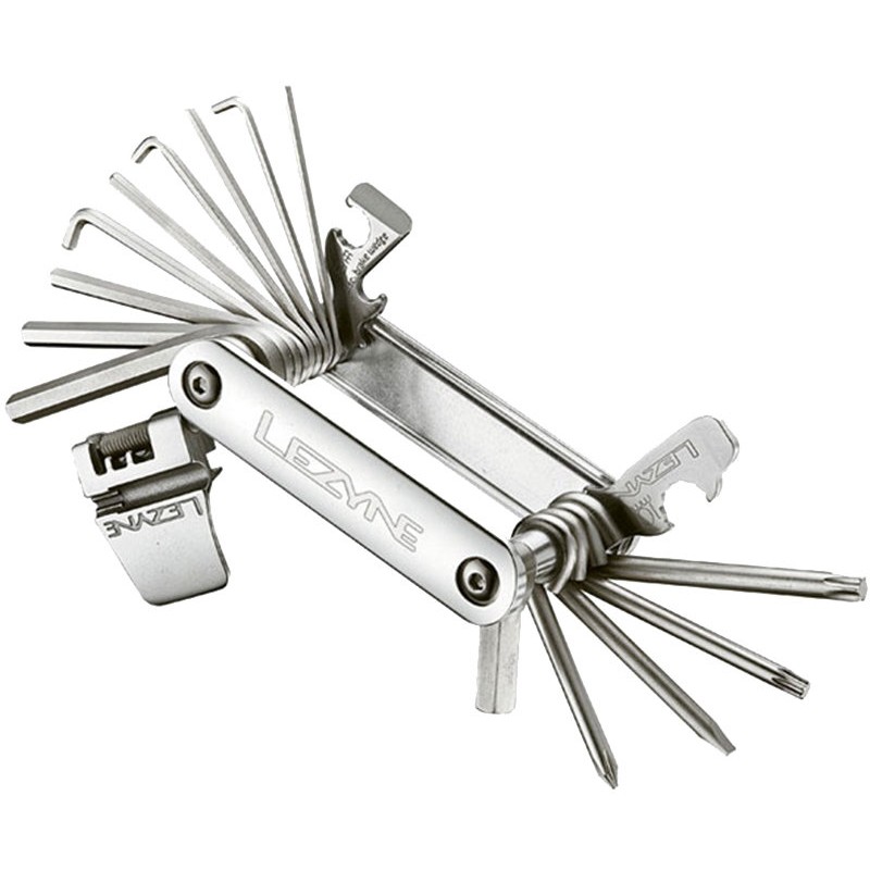 Мультитул Lezyne BLOX - 23 отличается своей многофункциональностью и удобным дизайном. Также стоит отметить, что этим мультитулом вы будете пользоваться, пока не надоест, так как он выполнен из износостойкого качественного алюминия. Удлиненные кованые биты выполнены из хром-ванадиевой стали. Кованная алюминиевая выдержка цепи 9/10/11 ск. имеет: шестигранники: 2, 2.5, 3, 4, 5, 6, 8 мм, L-шестигранники 2, 2.5, 3 мм, торэкс (звездочка) Т25, T30, плоская и крестообразная отвертки, бортировка, ключ на 8,10 мм, открывалка.