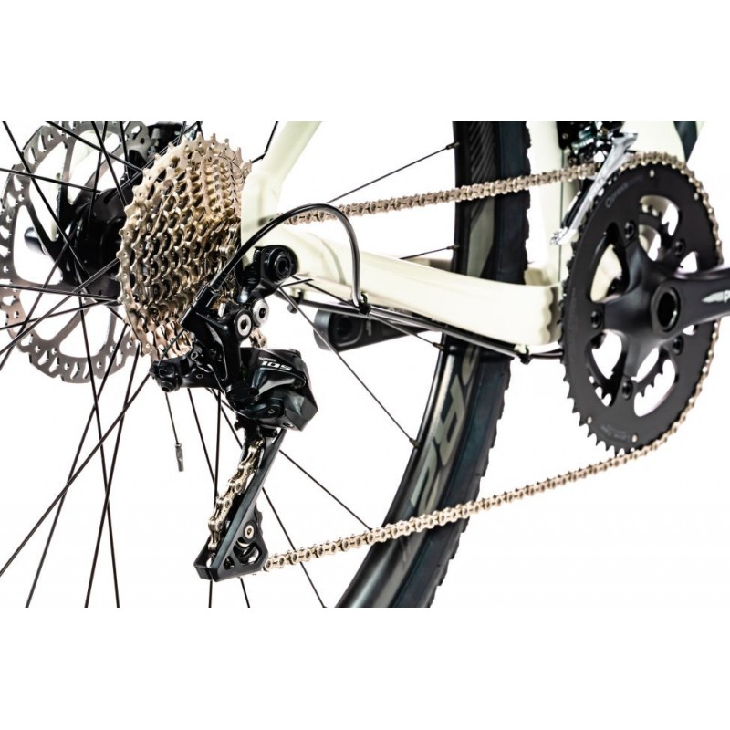 раме и карбоновой вилке, оснащен 22-скоростной трансмиссией и дисковыми