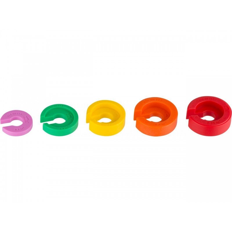 Комплект регулировки объема воздуха с проставками разного размера для индивидуальной регулировки кривой пневмопружины задних амортизаторов Float CTD и Float DPS с 2013 года. Для валов 9 мм. В наборе 5 проставок следующих объемов: 0,2 дюйма3, 0,4 дюйма3, 0,6 дюйма3, 0,8 дюйма3 и 0,95 дюйма3. Изменение объемных прокладок в амортизаторе - это внутренняя регулировка, которая позволяет вам изменять величину среднего хода и нижнего сопротивления: Если вы правильно установили прогиб и слишком легко используете полный ход (выход за нижнюю границу), то вы можете установить проставку большего размера, чтобы увеличить сопротивление снизу вниз.