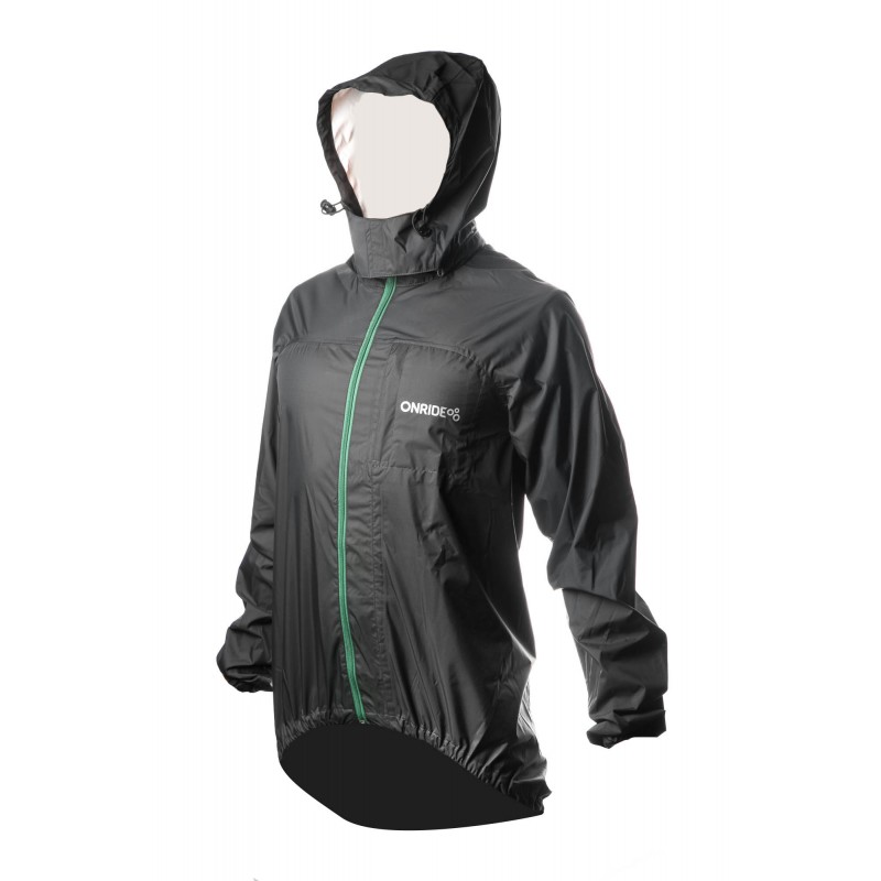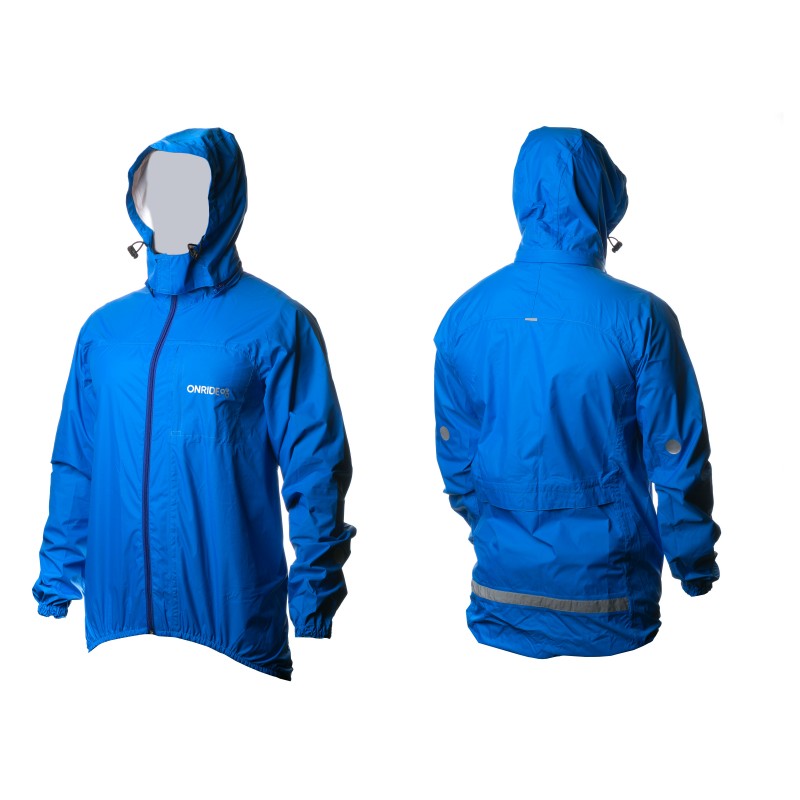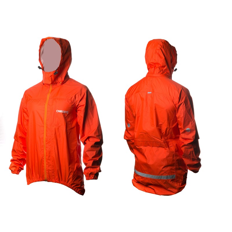 Дождевик с приталенным кроем и полноразмерной центральной застежкой "молния", рукава реглан, воротник-стойка с мягкой тканевой внутренней стороной. Капюшон с эластичным шнуром с фиксаторами и имеет возможность отстёгиваться благодаря застежке «молния». Отверстие с сеткой для циркуляции воздуха. Низ изделия и рукавов на эластичной резиновой тесьме. Швы проклеены и не пропускают влагу. Низ изделия продлен на спинке. На спинке нашита светоотражающая полоса шириной 25 мм.