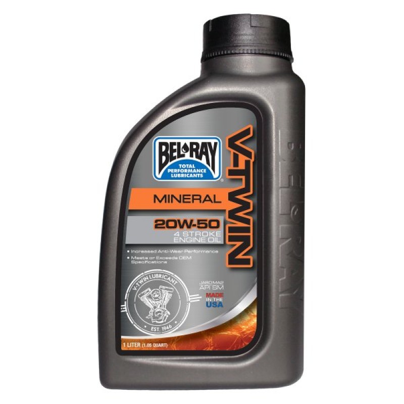 BEL-RAY V-TWIN MINERAL ENGINE OIL 20W-50 сформулировано, согласно высоких требований к маслам на нефтяной основе - с высоким индексом вязкости и низкой летучестью. Отличная альтернатива оригинальным маслам Harley-Davidson, Victory, Buell а так же Indian.