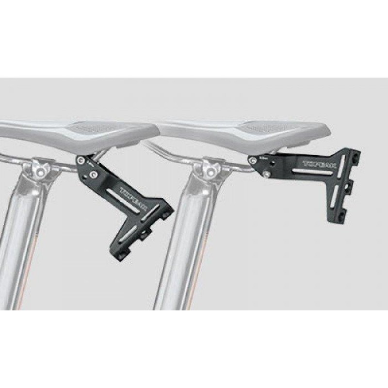 Кронштейн подсед. Topeak Tri-Backup Pro V для системы гидратации, седло триатлон (черный) Двойной подседельный флягодержатель с расширенным функционалом. Целиком выполнен из алюминия, совместим со всеми типами седельных рельс (хром-молибден, титан, карбон). Позволяет одновременно закрепить две фляги, объемом до 750 мл, компактный или насос с баллоном сжатого воздуха, сумку для камеры или трубки, компактный мультитул. Присутствует возможность регулировки угла в двух положениях. Конструкция модели предназначена для использования со стандартными седлами.