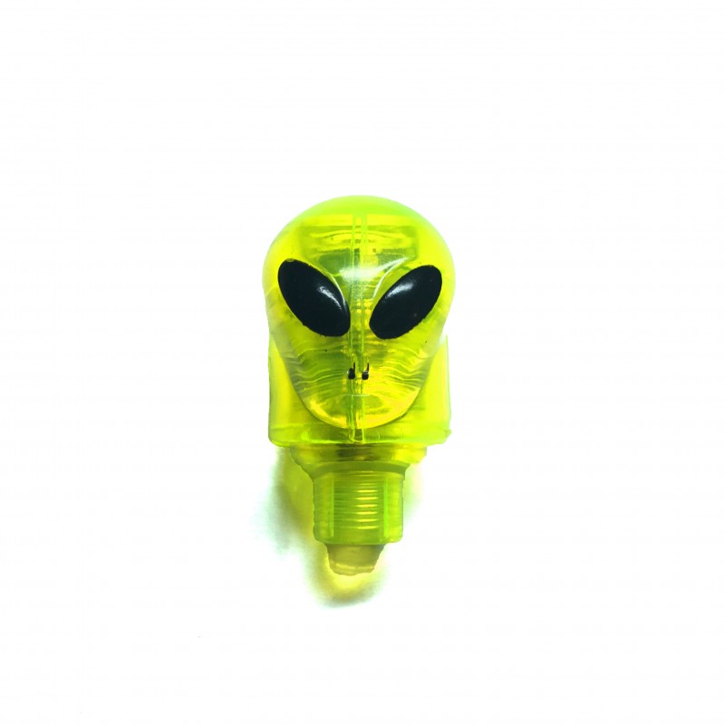 Декоративный элемент освещения на ниппель камеры в форме инопланетянина. Работает во время движения.